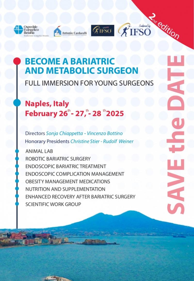The Course entitled "BECOME A BARIATRIC AND METABOLIC SURGEON - FULL IMMERSION FOR YOUNG SURGEONS - 2nd EDITION, NAPLES, Italy, 26/02/2025-28/02/2025 has been accredited by the European Accreditation Council for Continuing Medical Education (EACCME®) with 17.5 European CME credits. Each medical specialist should claim only those hours of credit that he/she actually spent in the educational activity.