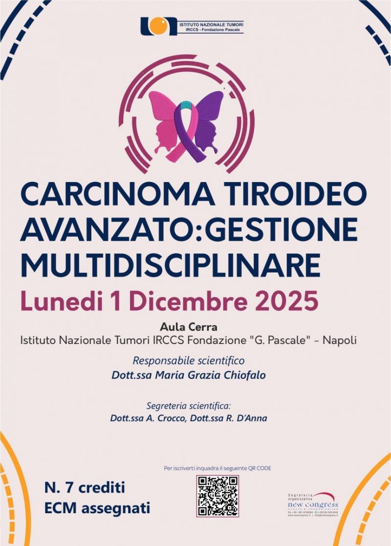 I.N.T “Fondazione G. Pascale” (Provider ECM n.645) ha assegnato all’evento nr. 7 crediti formativi ECM. L’evento è accreditato per tutte le professioni sanitarie e per 80
