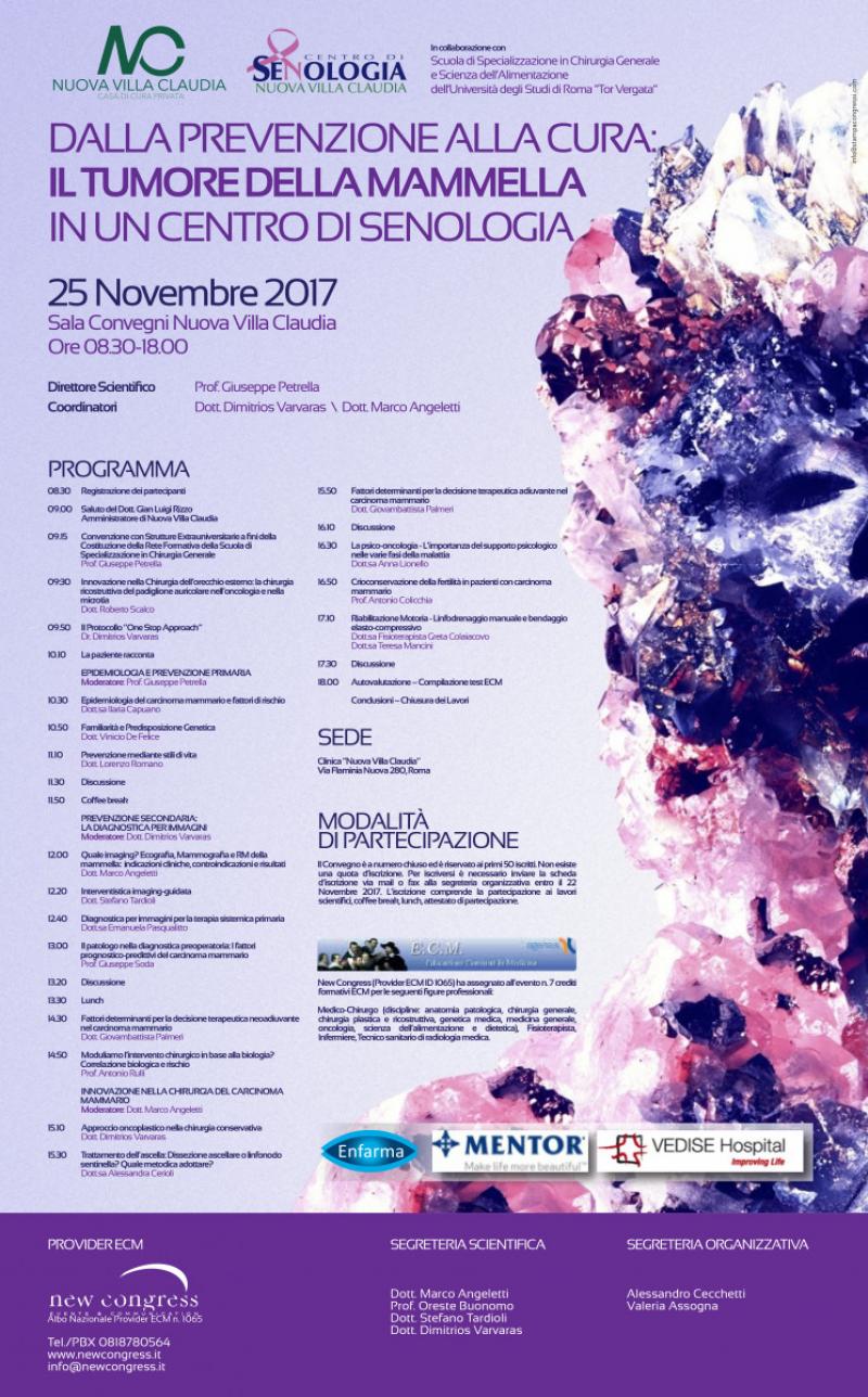 New Congress (Provider ECM ID 1065) ha assegnato all’evento n. 7 crediti formativi ECM per nr. 50 partecipanti per le figure professionali di Biologo, Psicologo, Infermiere, Fisioterapista, Tecnico sanitario di radiologia medica, Medico-chirurgo (discipline: anatomia patologica, chirurgia generale, chirurgia plastica e ricostruttiva, genetica medica, medicina generale, oncologia, scienza dell’alimentazione e genetica, radiodiagnostica)